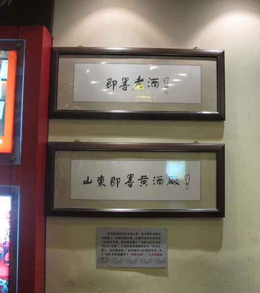 該展區(qū)主要展示了舒同親筆題寫的“”品牌名稱和山東即墨黃酒廠廠名,以及各級領(lǐng)導(dǎo)來廠視察時留下的歷史老照片,以及政界、軍界、文人墨客等社會各界留下的題詞墨寶;并陳列了歷年來即墨老酒榮獲的獎牌、證書等榮譽。